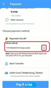 Step 3: After choosing UPI as a payment method, A UPI Id will see on the screen. Copy this UPI Id.