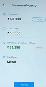 - If you choose an FD amount of Rs.50,000, you will get a metal card for a lifetime free.