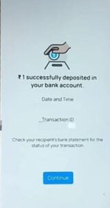 Step 17: Rs.1 will be credited to your account to verify your bank account information.
